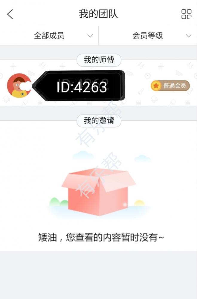 个人页面 — 右上方团队人数 —确认下邀请人ID:4263