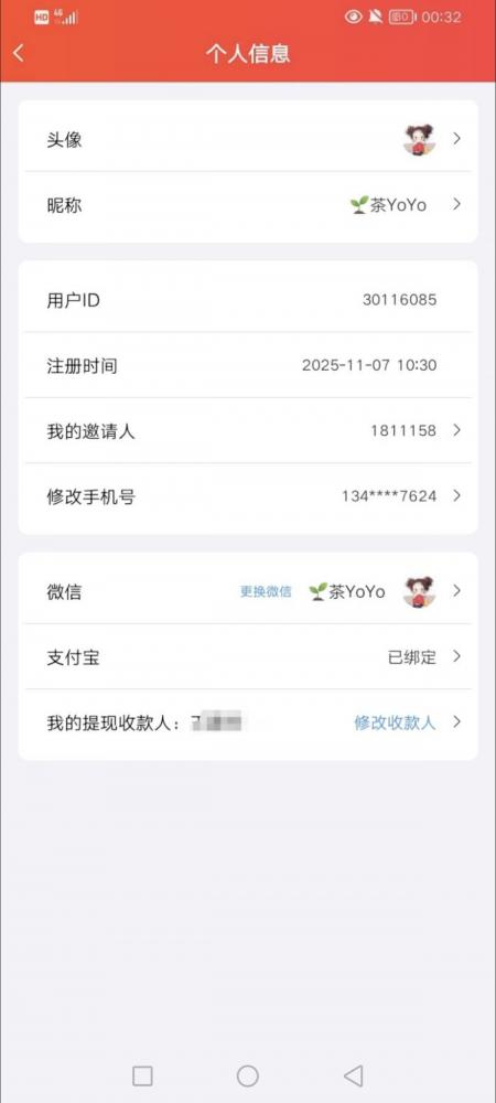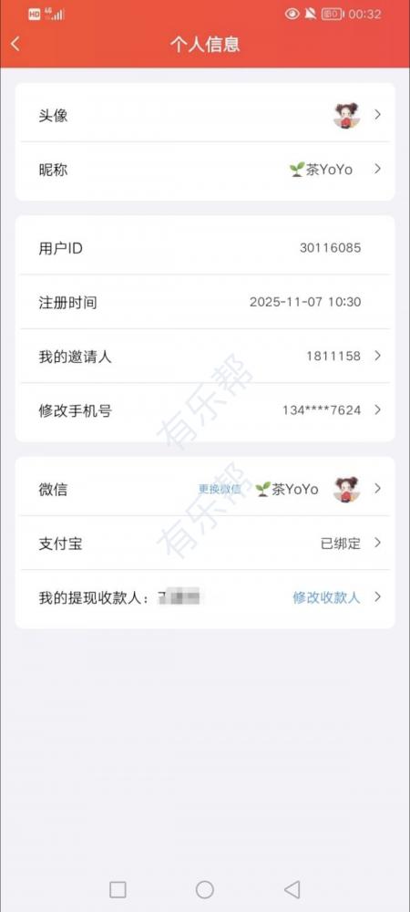 个人主页面左上角头像进去截图,显示你的id和邀请人1811158