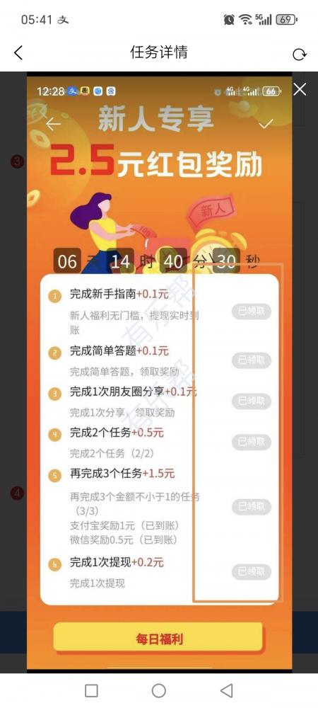点个人主页面左上角头像进去确认一下邀请人1811158,绑定微信再去完成新人任务