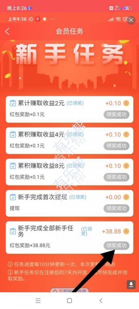 首页点击新手任务,全部完成截图