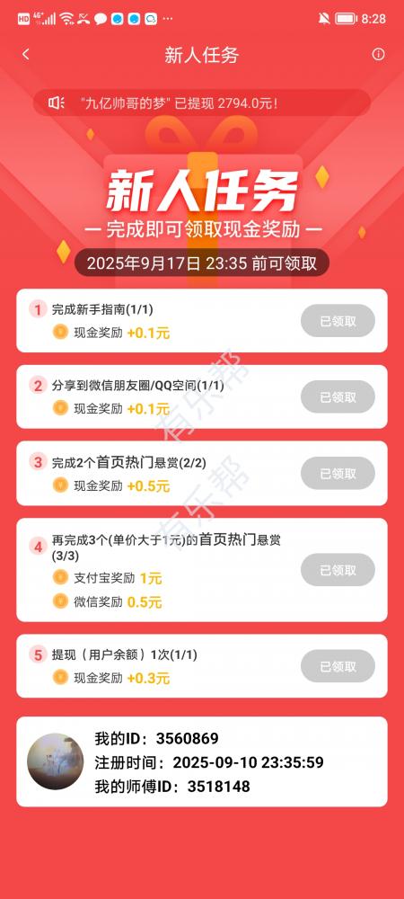 首页新手任务全部完成,没完成的别乱来提交