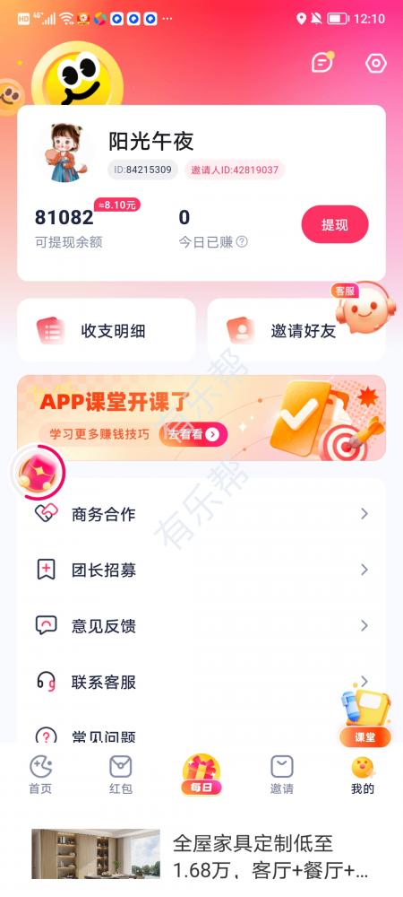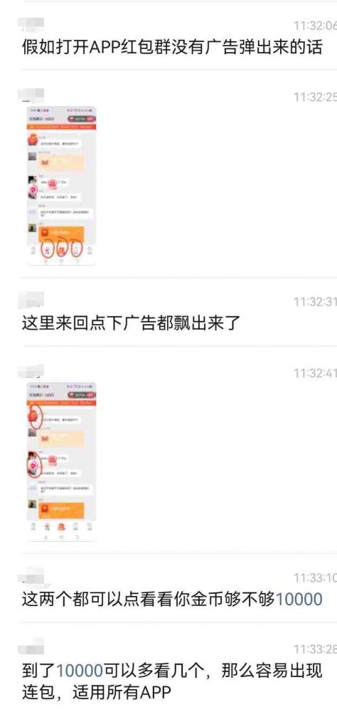 在红包页面看弹出来的广告,不弹的话中间三个按钮来回切换,一定等福袋金币🈵10000再领,提前领会越领越少,🈵10000后多看几个广告再领,会出现连包,按方法,每天打底20米