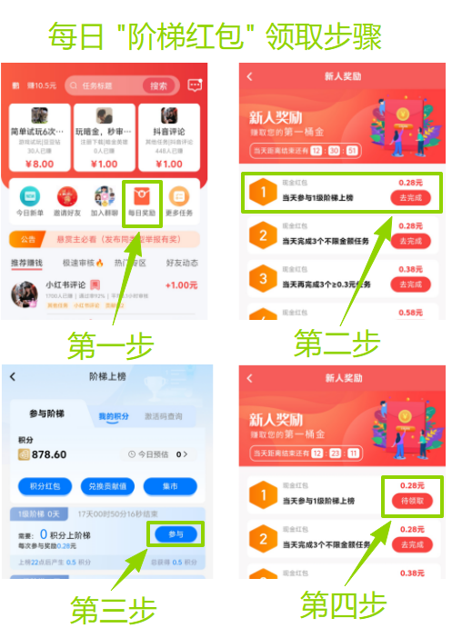 新活动来袭!!!每天签到参与1阶梯即可 每天领取0.28元外加0.5元积分 活动持续30天
