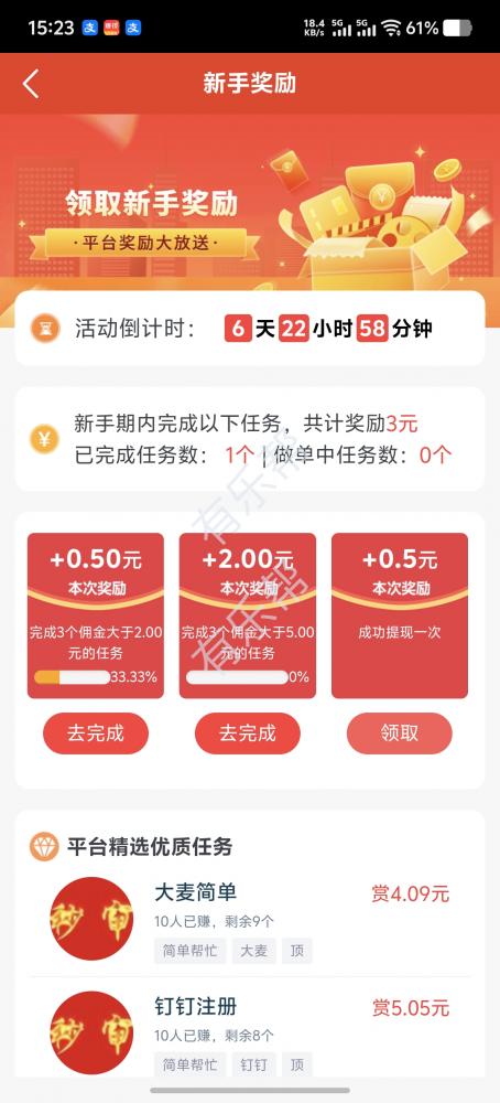 新出悬赏软件,完成新人任务即可