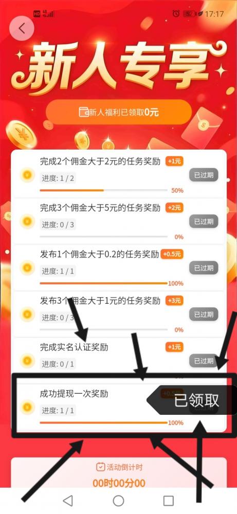 (任务注册日期起三天内有效!如任务超时!完成提现领奖重新接单提交即可!)
