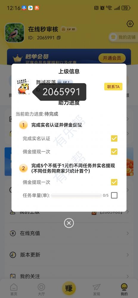 点击我的我的上级全部完成即可